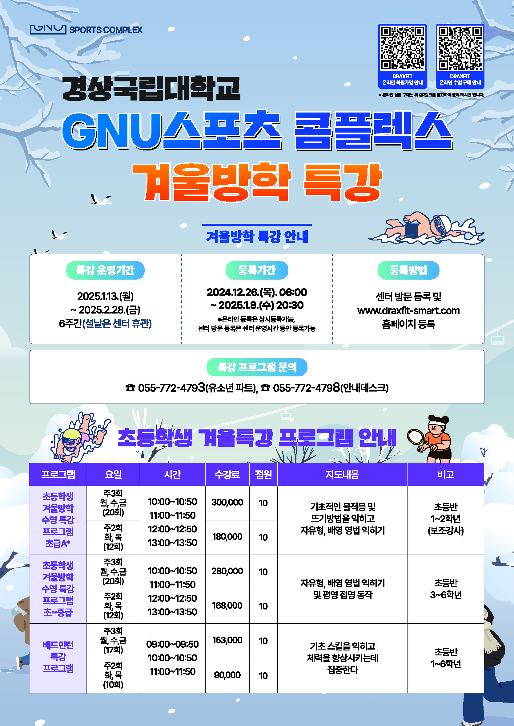 GNU스포츠콤플렉스 겨울방학 특강