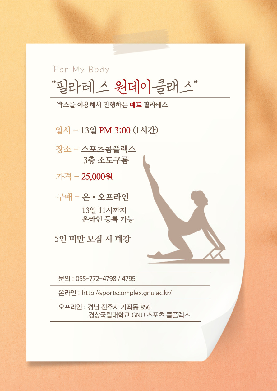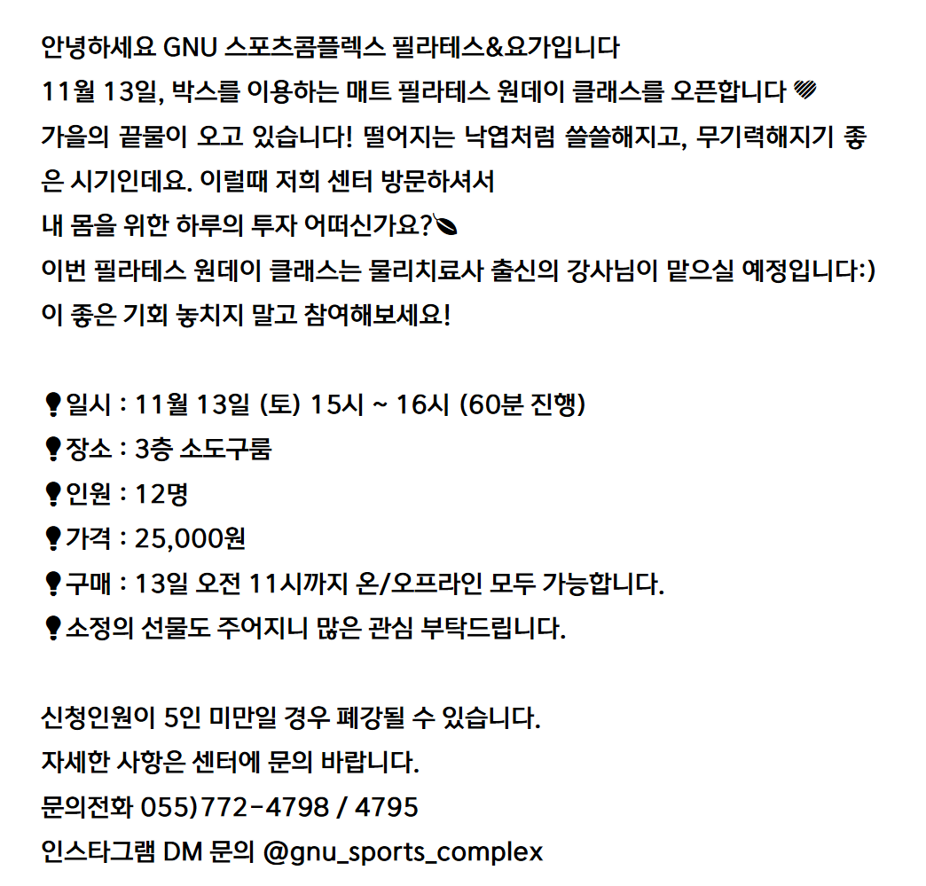 11월 13일 필라테스 원데이 클래스 모집
