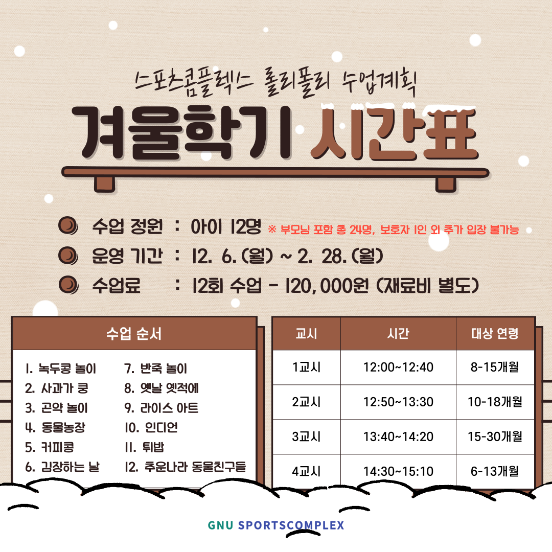 [영유아] 엄마랑 아기랑 롤리폴리 겨울학기 프로그램 안내