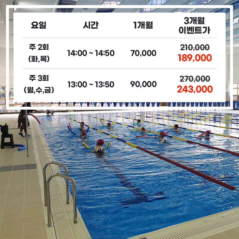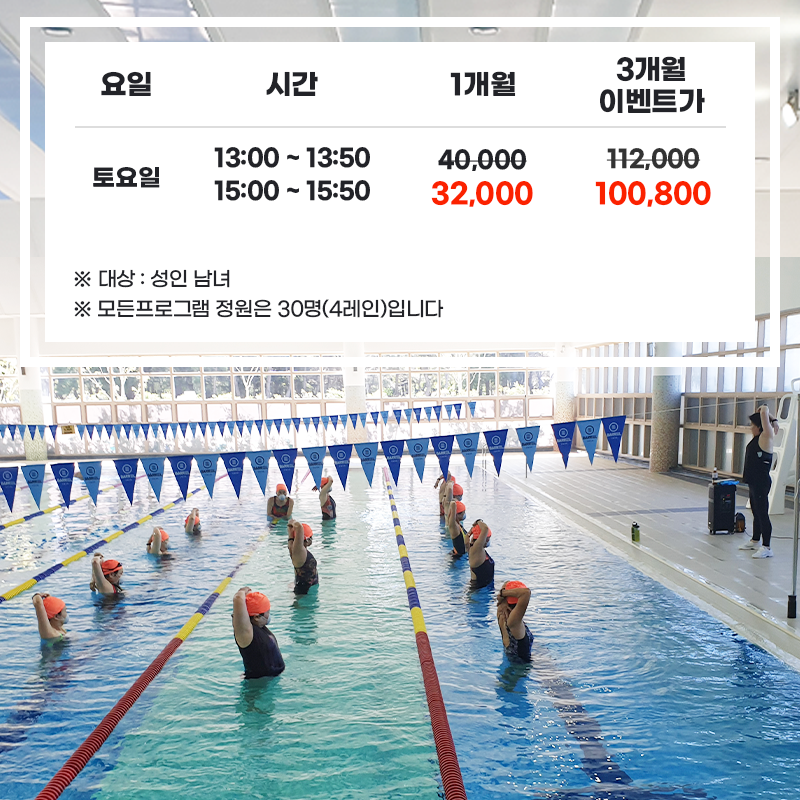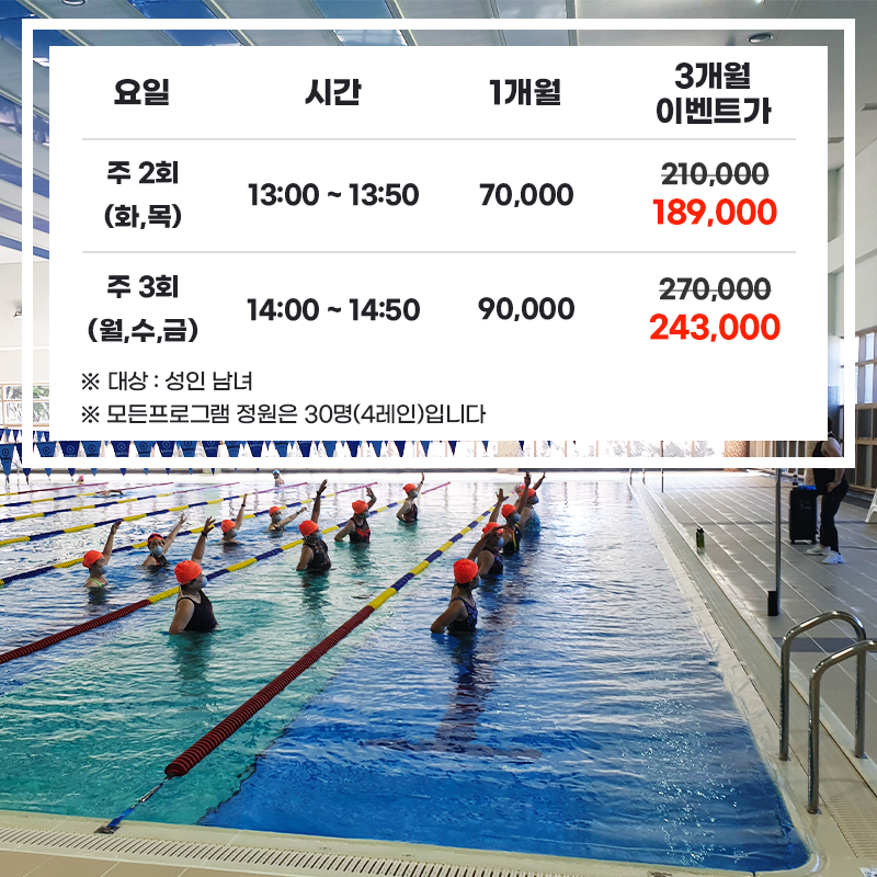 12월 아쿠아로빅(줌바) 수업 및 가격 할인 혜택 안내