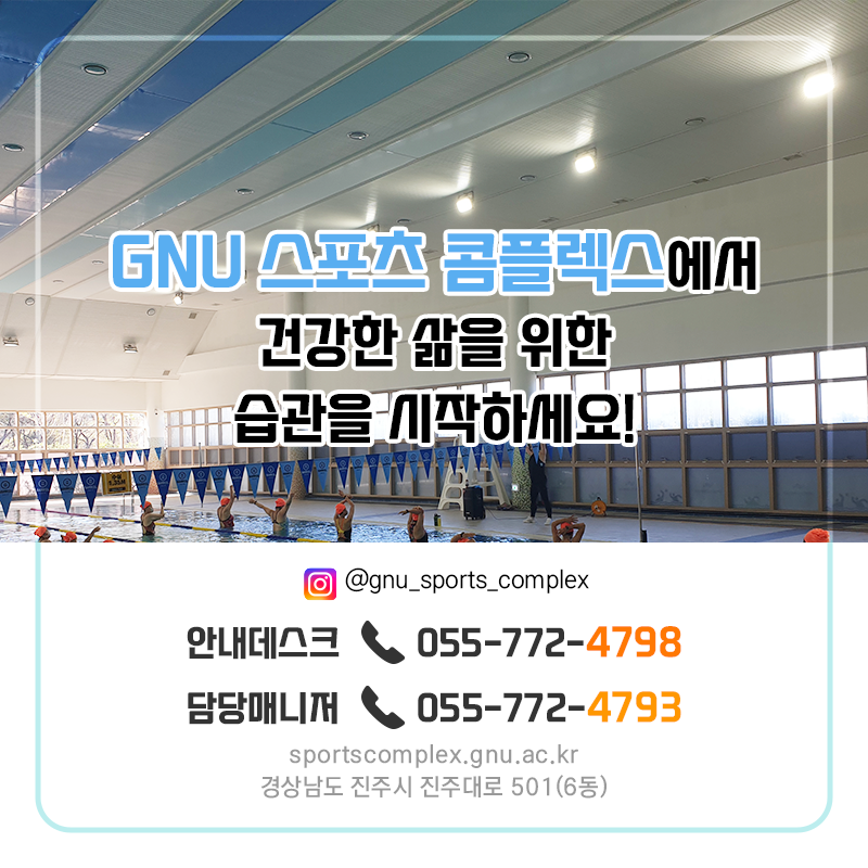 안녕하세요. GNU스포츠콤플렉스에서 알려드립니다.