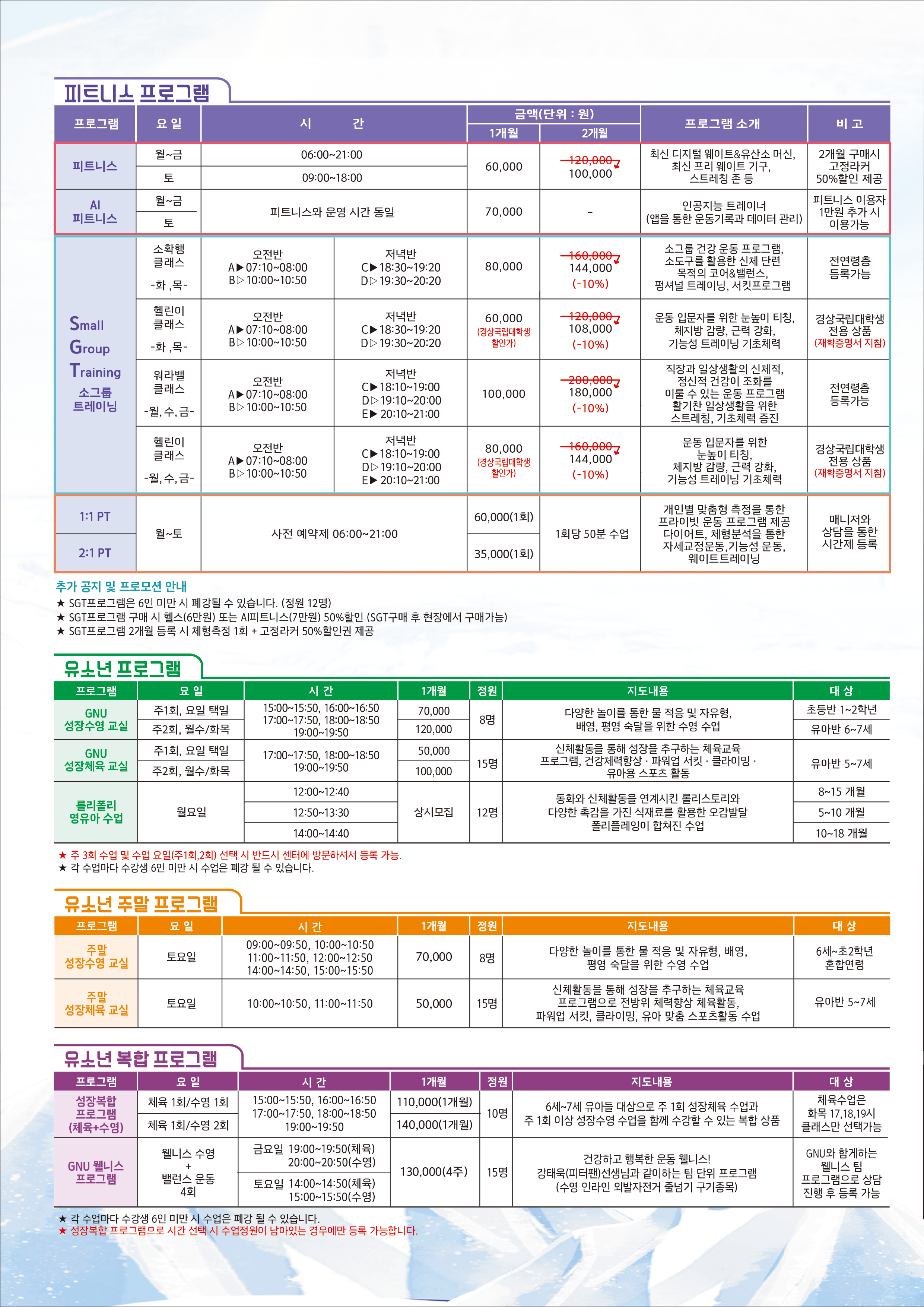 <운영시간> 월~금 : 06:00~21:00 / 토요일 : 09:00~18:00 / 일요일, 공휴일 휴관 / 자세한 공지 내용은 여기서 확인하세요.