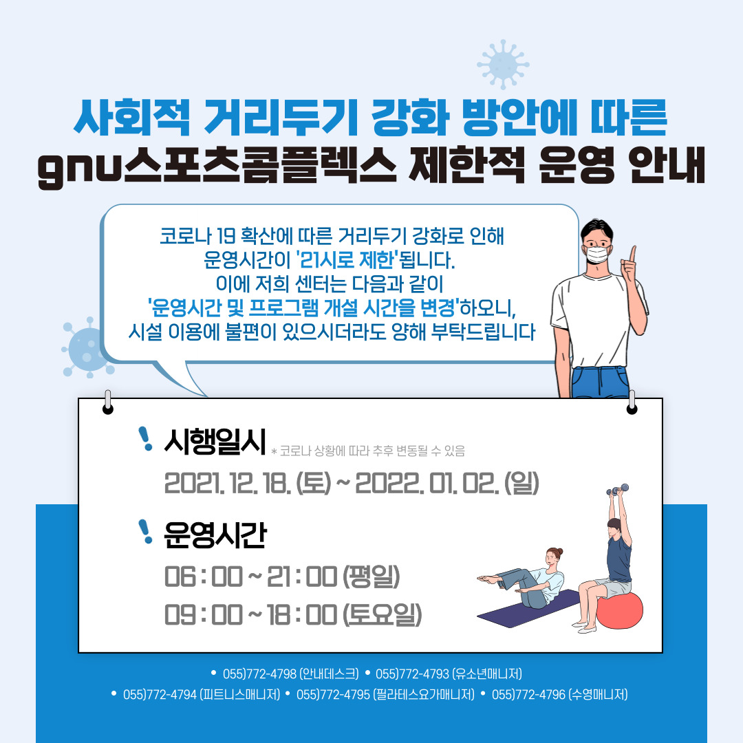 사회적거리두기 강화로 인한 운영시간 변경 안내