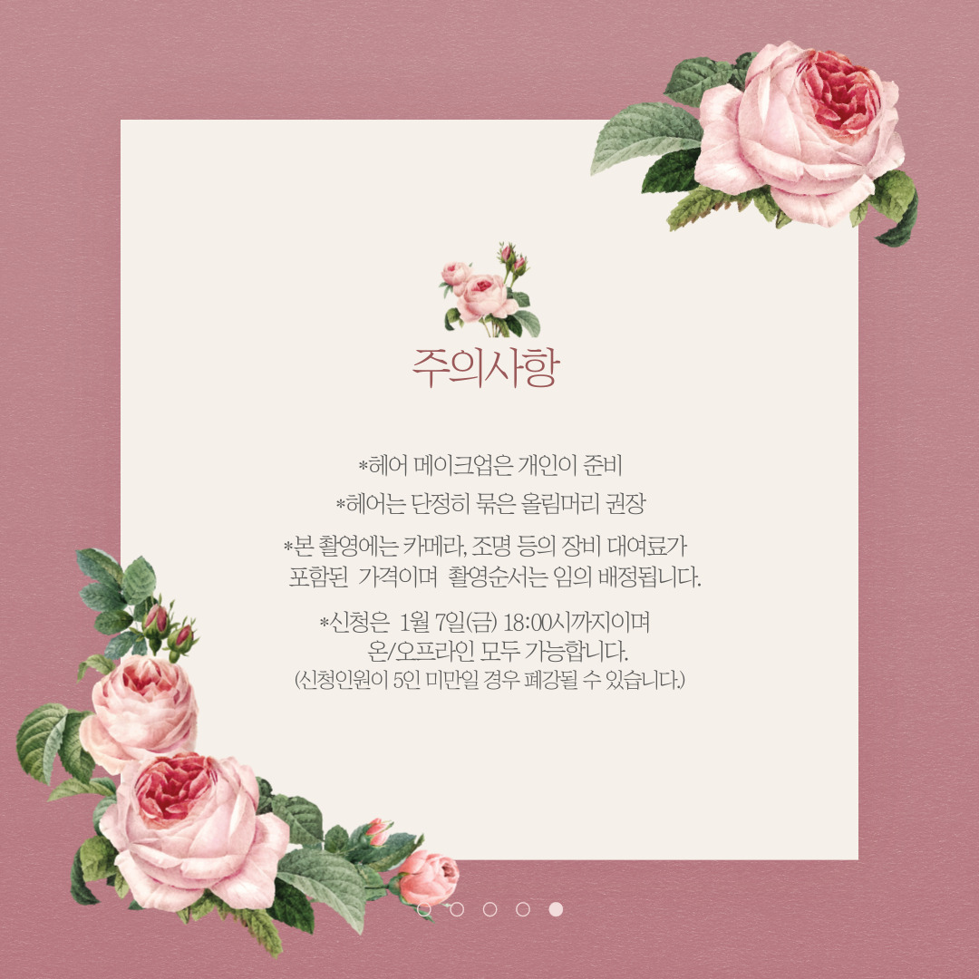 *본 촬영에는 카메라, 조명 등의 장비 대여료가 포함된 가격이며 촬영순서는 임의 배정됩니다.