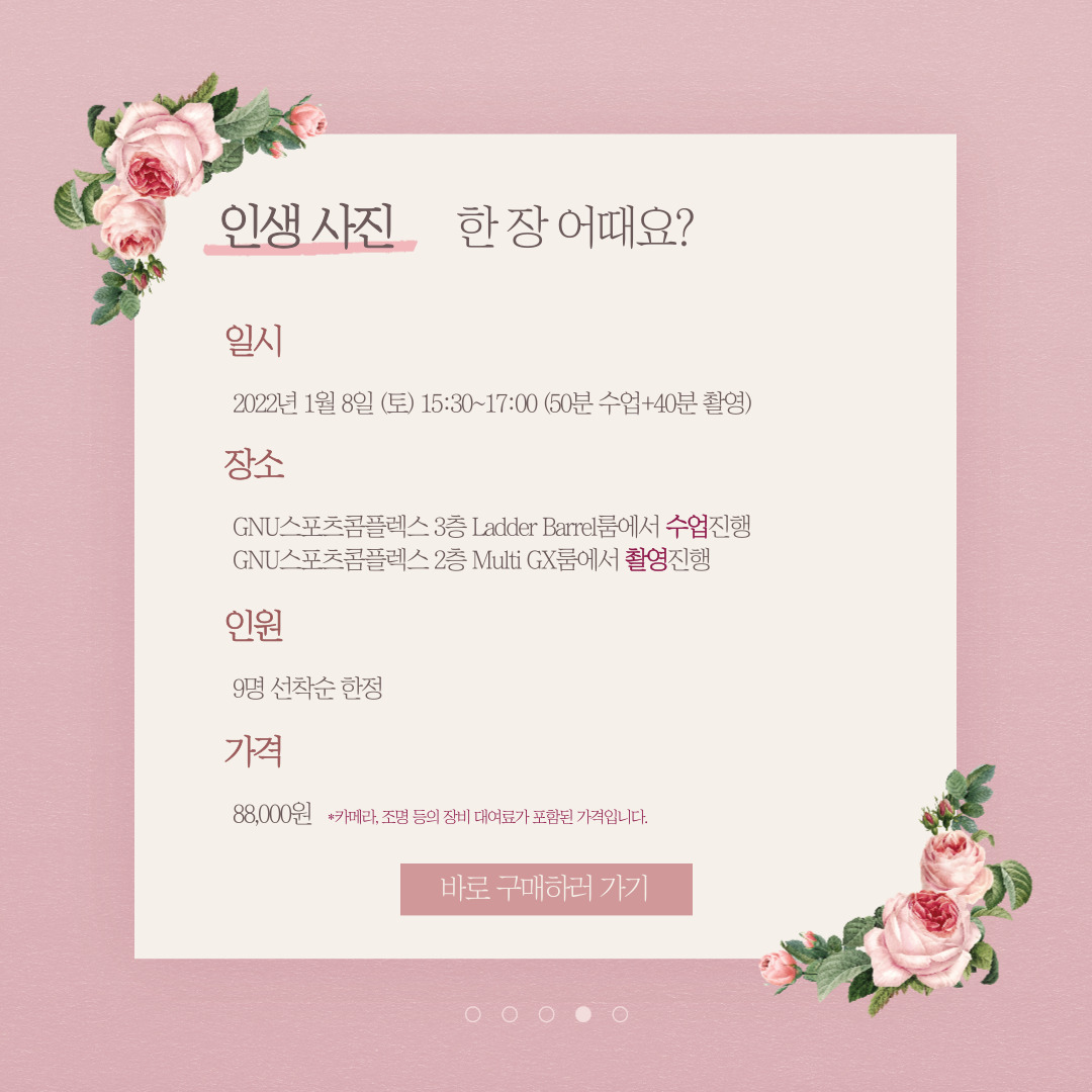 2022년 1월 8일 (토) 15:30~17:00 (50분 수업+40분 촬영)