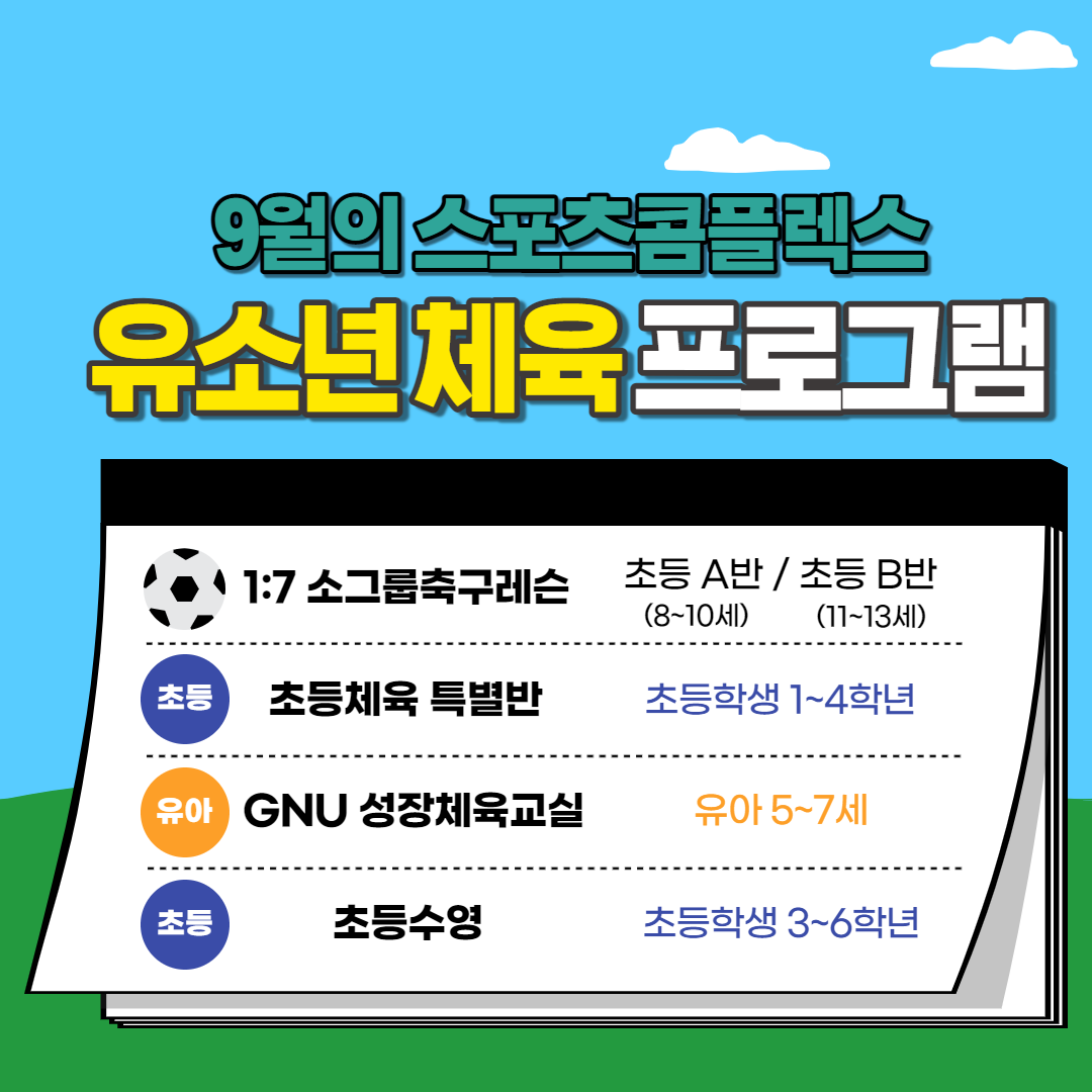 [유소년] 9월 초등학생 대상 프로그램 안내
