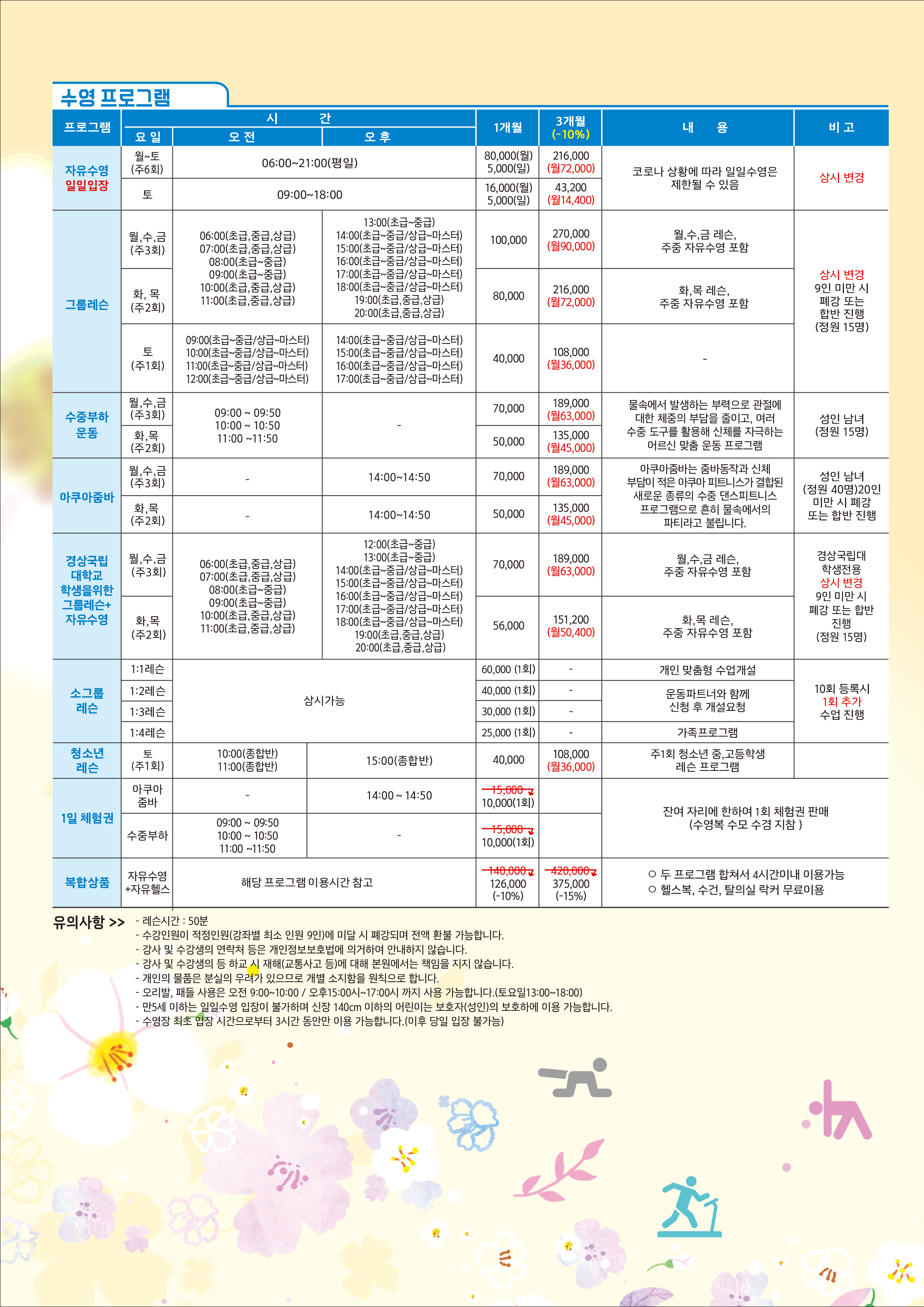 <운영시간> 월~금 : 06:00~21:00 / 토요일 : 09:00~18:00 / 일요일, 공휴일 휴관 / 자세한 공지 내용은 여기서 확인하세요.