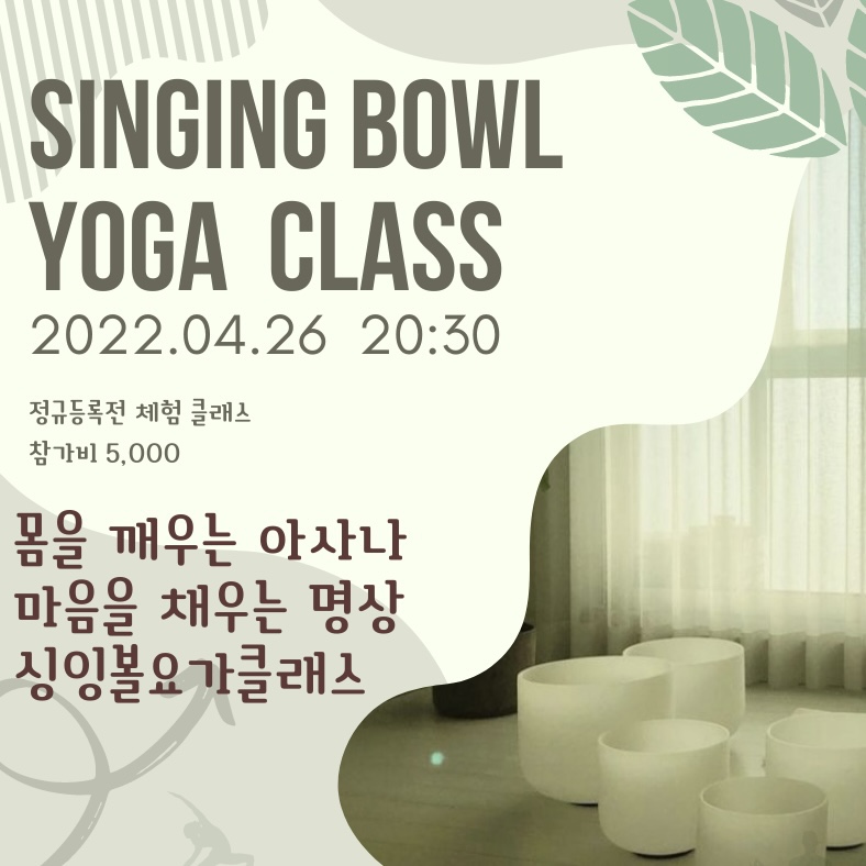 싱잉볼 요가 원데이 클래스 체험반 모집 작성자관리자 작성일2022년 04월 15일 11시 08분 조회수3352 안녕하세요, GNU스포츠콤플렉스 요가&필라테스입니다 :) 오랜만의 원데이클래스 소식으로 돌아왔어요!지선선생님의 크리스탈싱잉볼 & 요가 원데이클래스입니다. 5월 정규수업 런칭 전, 체험 프로그램이니많은 참여 부탁드려요. :)