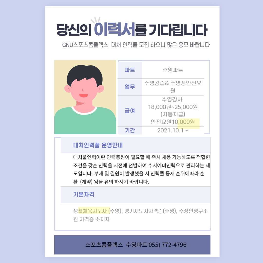□ 모집 직군 : 수영파트 파트타이머